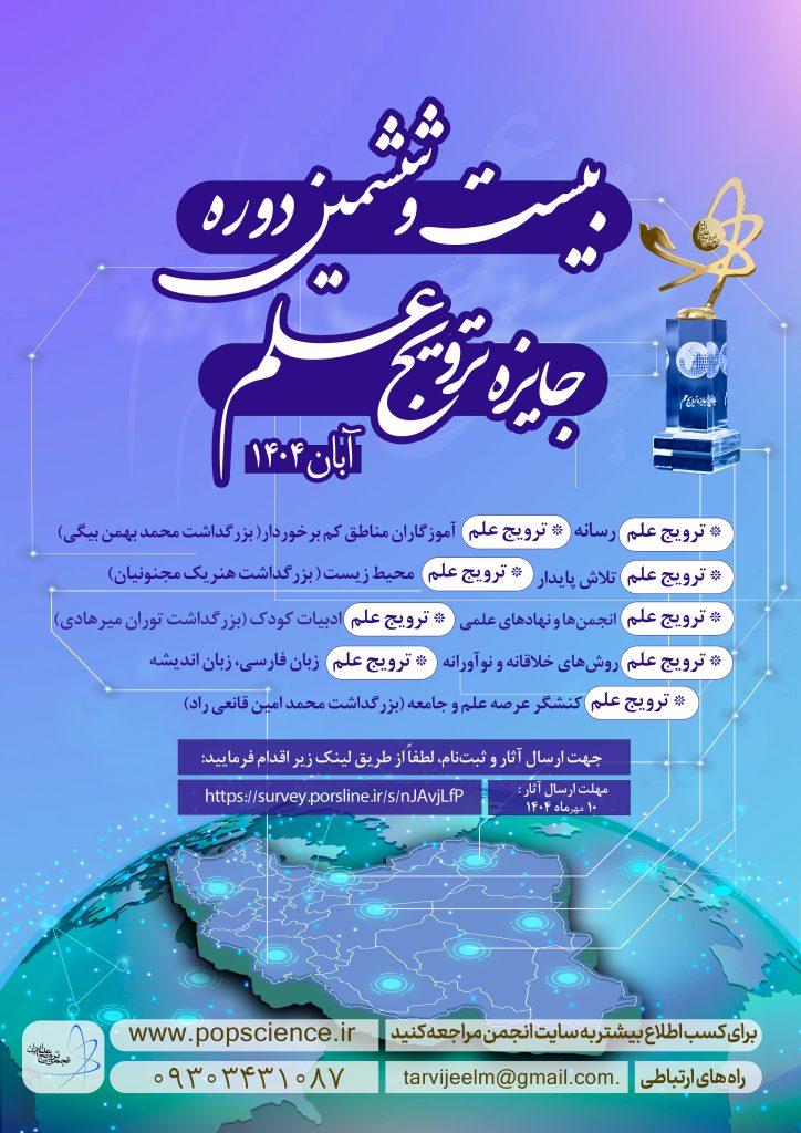 فراخوان بیست و ششمین دوره جایزه ترویج علم ایران