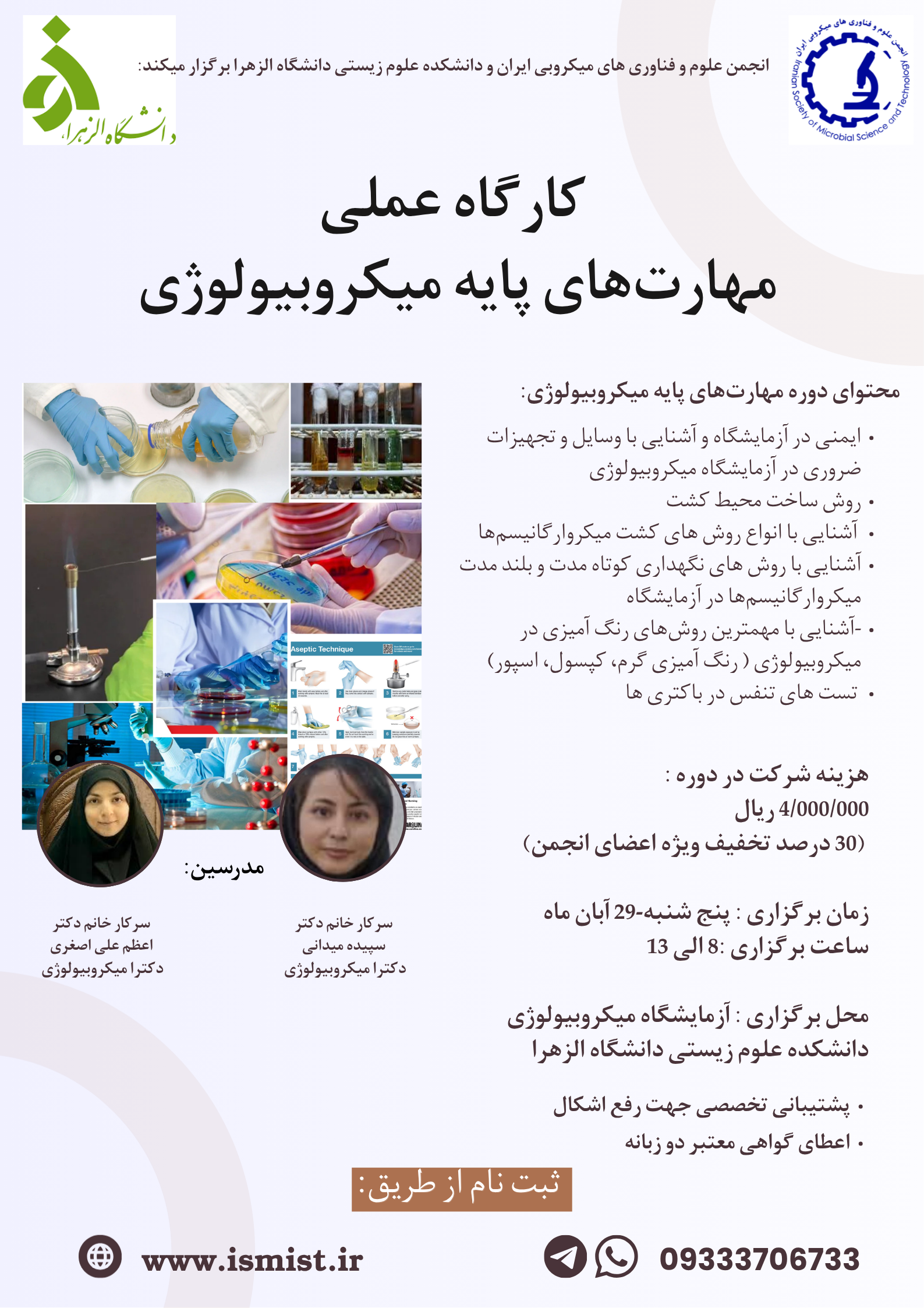 محل برگزاری : آزمایشگاه میکروبیولوژی دانشکده علوم زیستی دانشگاه الزهرا